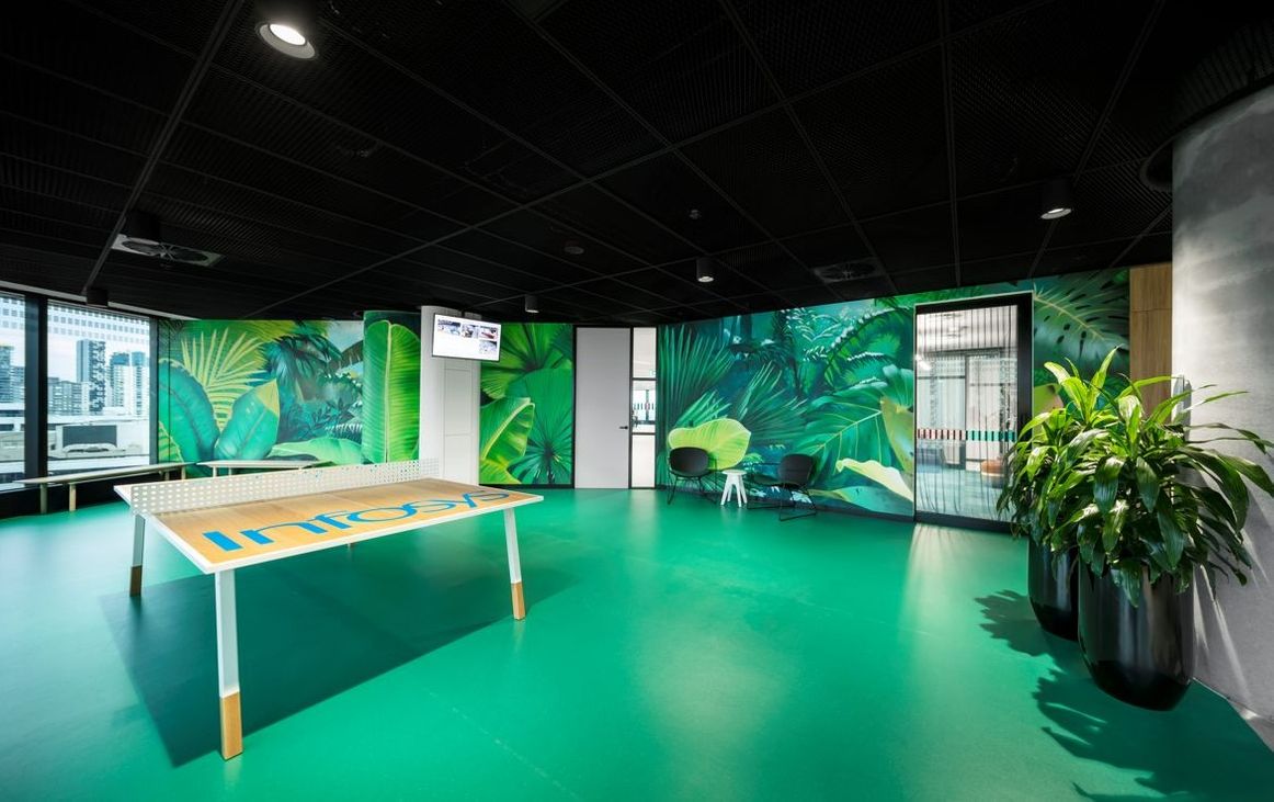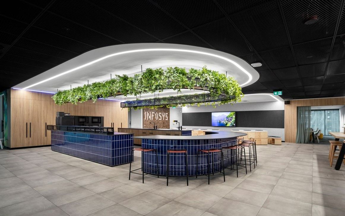 Infosys' on-site ecosystem encompasses innovation, community and continuous learning. With Shape and Siren Design Group, Entro helped to develop a workplace that ignites high-performance throughout the workplace.