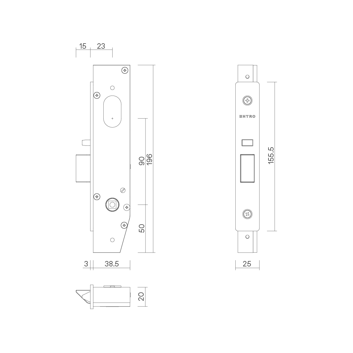 | Latchbolt | 15mm latchbolt, including a separate auxiliary deadlatch with a 9.5mm projection |
