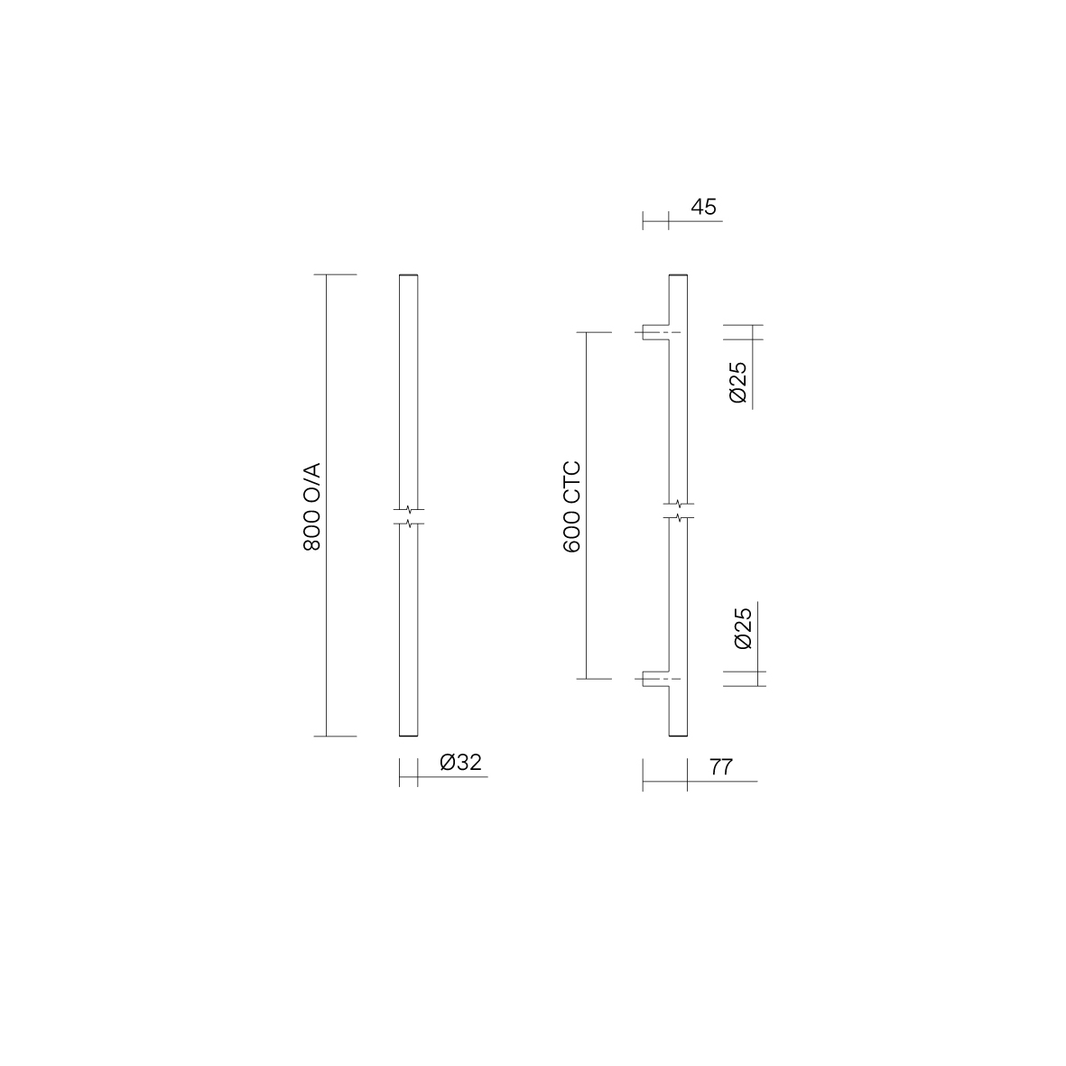 • C0606 Round Section H-Pull Handle Set - 600 CTC 800 OA