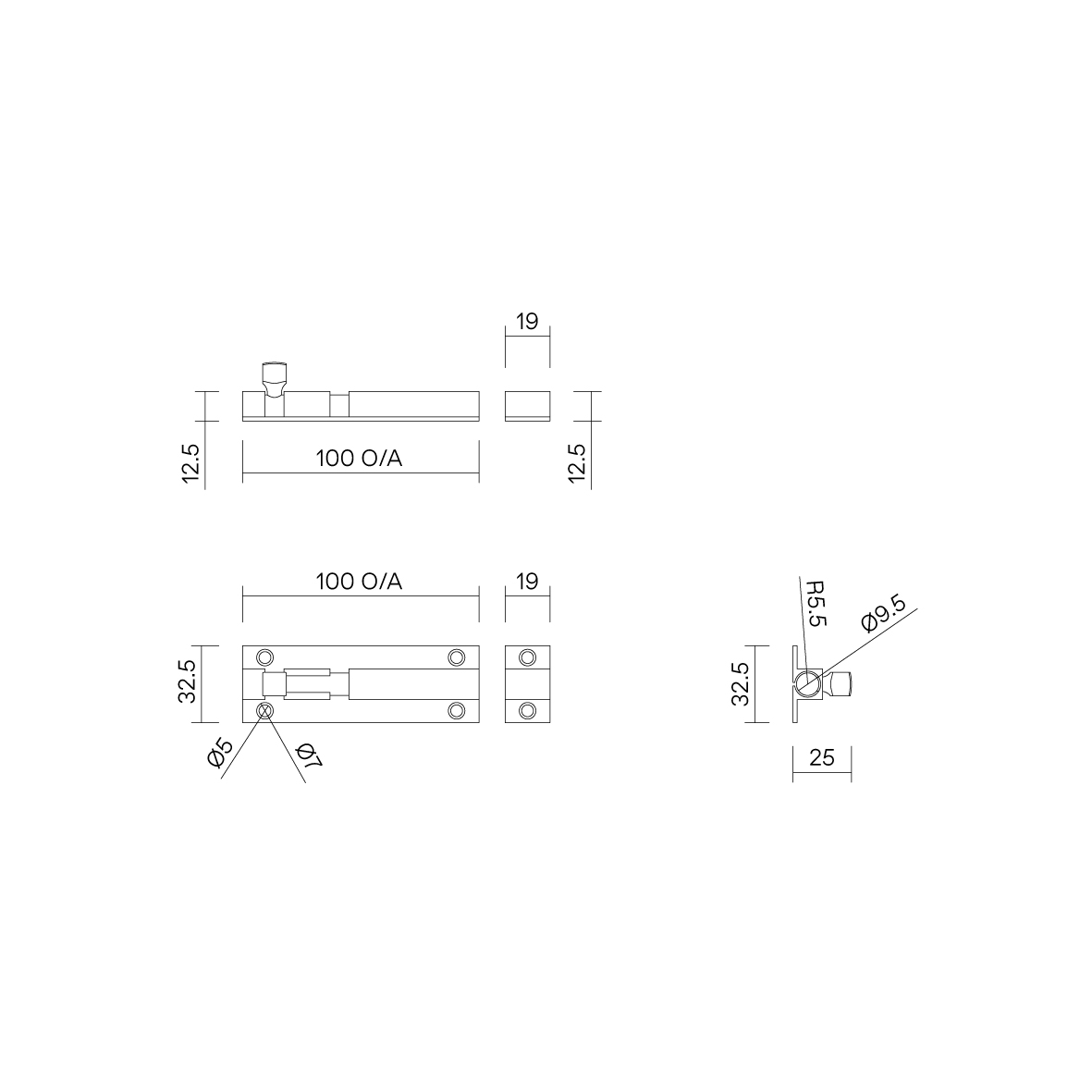 G0501 Barrel Bolt 100mm SC