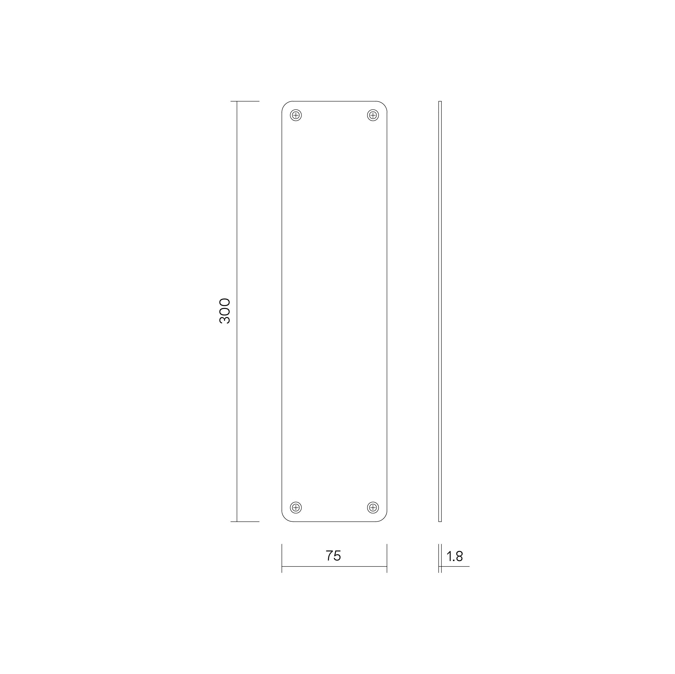 Push Plate Visible Fix 300x75mm SSS