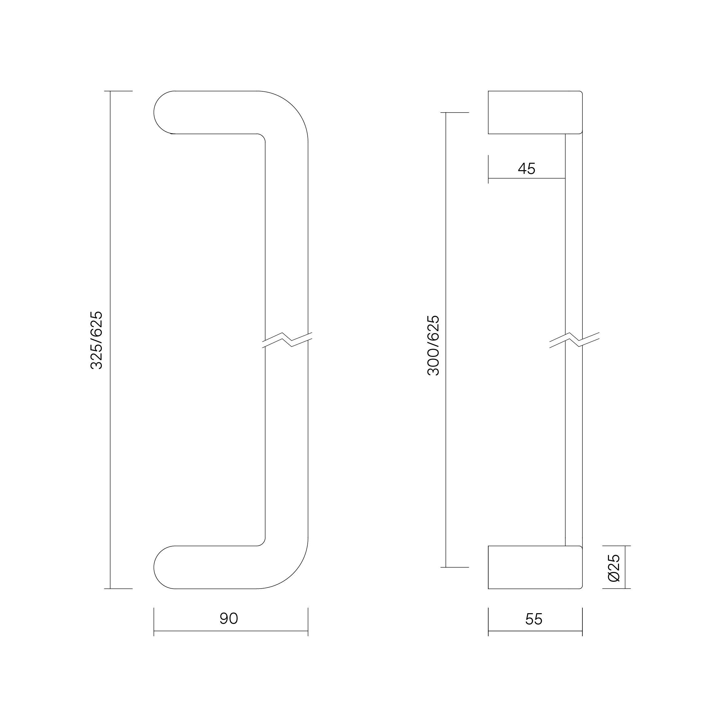 Round Section Offset Flat Pull Handle Set 25 x 300 CTC x 325 OA SSS